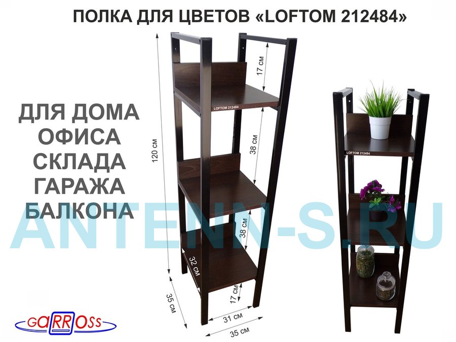 В корзину Купить в 1 клик Подставка для цветов, три полки, черный "LOFTOM-212484" венге, высота 120, ширина 30, глубина 35 см