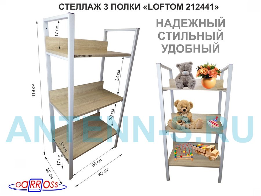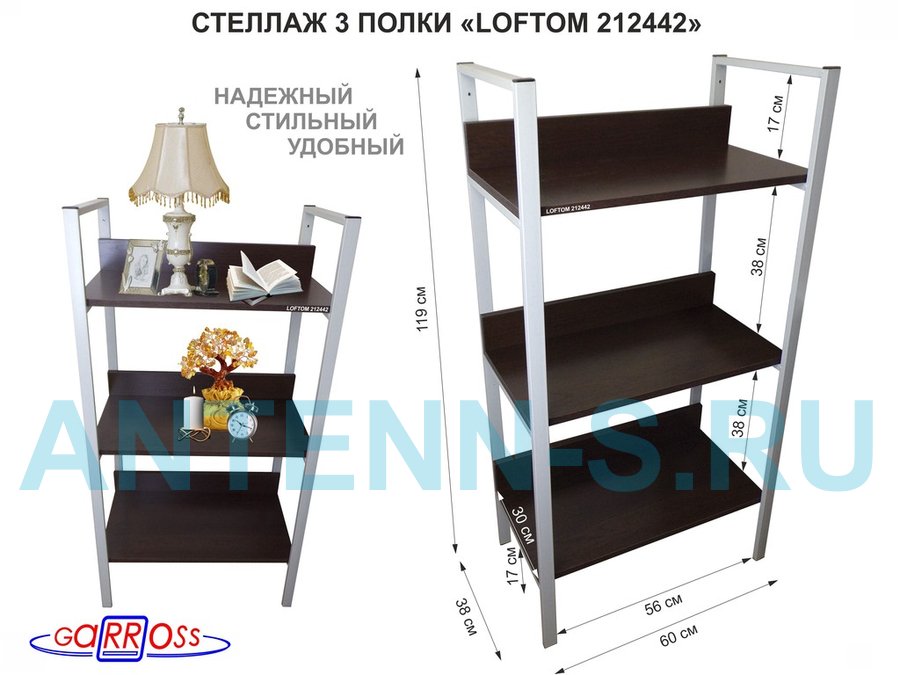 Стеллажи универсальные "LOFTOM" с 3 полками 0,6х0,3 м, высотой 1,2 м
