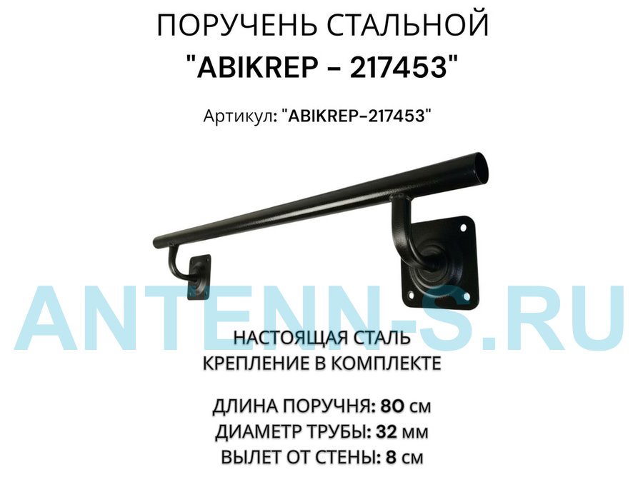 Поручень пристенный для зданий, длина 240см вылет 8см "ABIKREP-217449" черный, 4 опоры, диаметр 32мм