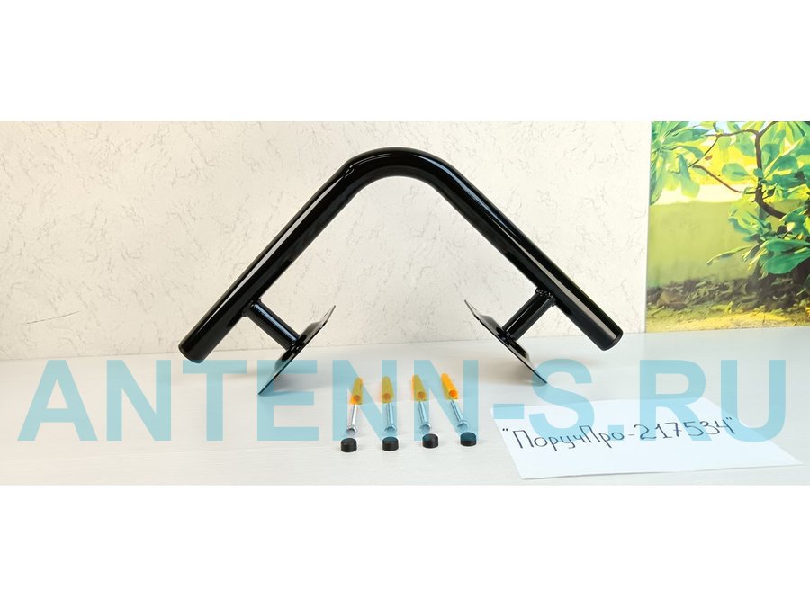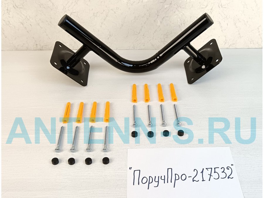 Поручень угол 90 гр, внутренний, 25х25см "ПоручПро-217532" вылет 10см, черный, 2 опоры, диаметр 32мм