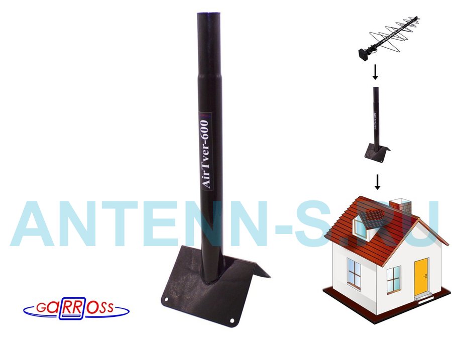 Кронштейн антенный на конёк крыши, диаметр 51мм "AirTver-600-126086" черный высота 60см обжата 120мм