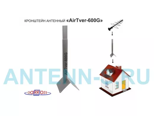 Кронштейн антенный на конёк крыши, диаметр 51мм "AirTver-600-126087" серый высота 60см обжата 120мм