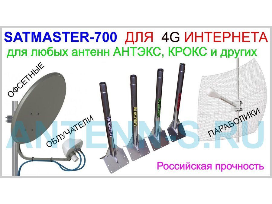 - "SATMASTER-700" СИНИЙ антенный кронштейн предназначен для установки антенн мобильного интернета, спутникового и эфирного цифрового телевидения, антенн радиостанций всех диапазонов. Крепится в самую высокую точку дома на конёк двускатной крыши