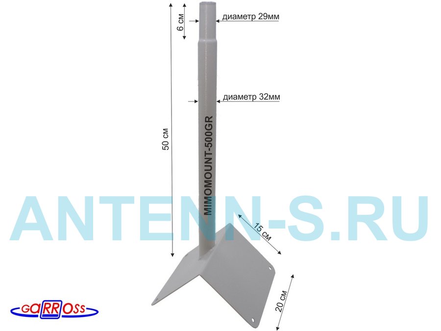 Кронштейн на конек для антенн, диаметр 32мм "MIMOMOUNT-500GR-105610" серый, обжатый, высота 50 см