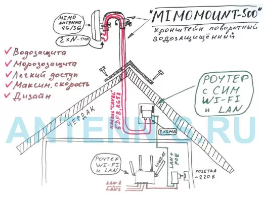 - Появляется возможно красиво установить антенну для мобильного интернета, добиться высоких скоростей и длительного срока службы.