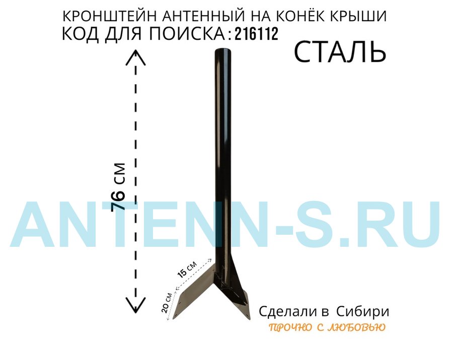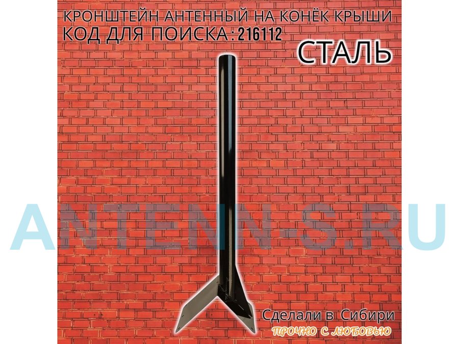 Кронштейн антенный на конёк крыши "КОНЁК-V4-700BK-216112" черный,высота 70 см, диам.50мм с заглушкой