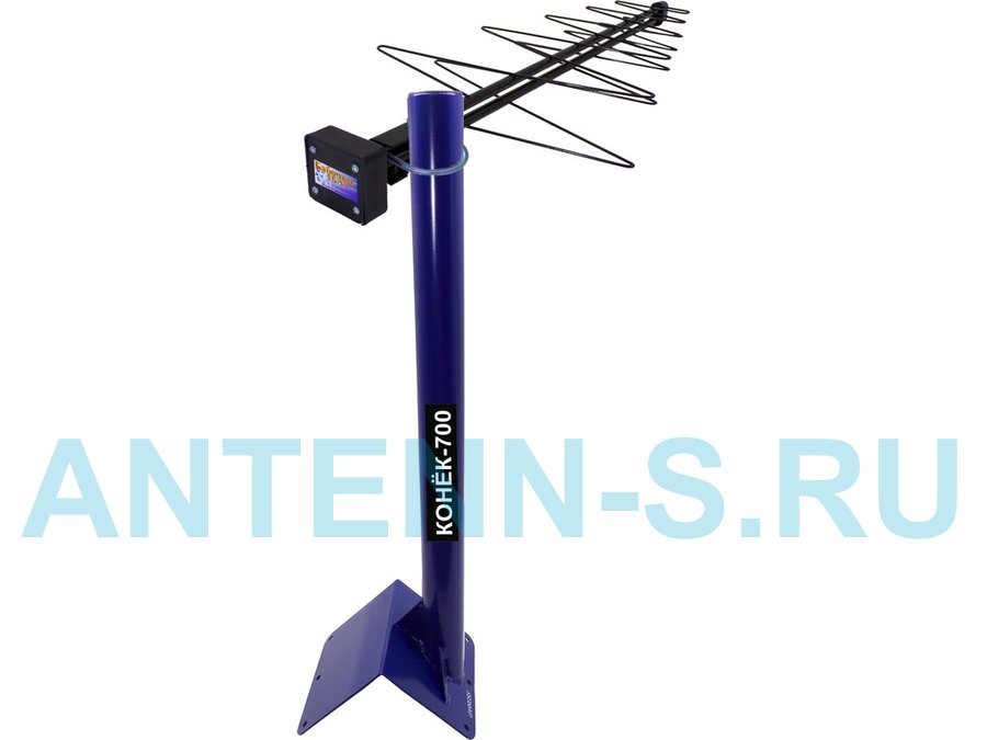 - "КОНЁК-700-НЕОБЖАТЫЙ" СИНИЙ антенный кронштейн предназначен для установки антенн мобильного интернета, спутникового и эфирного цифрового телевидения, антенн радиостанций всех диапазонов. Крепится в самую высокую точку дома на конёк двускатной крыши