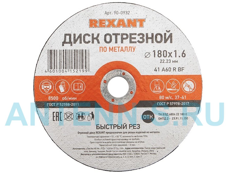 В корзину Купить в 1 клик Диск отрезной по металлу (180х1.6х22.23 мм)