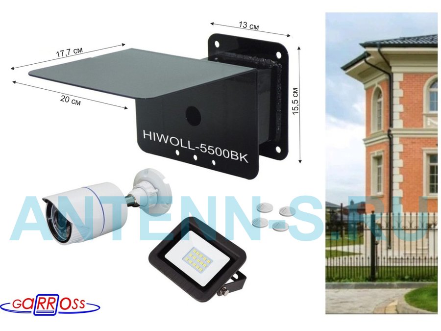 В корзину Купить в 1 клик Кронштейн для камеры и прожектора с боксом "HIWOLL-5500BL-138476" черный с козырьком, к стене