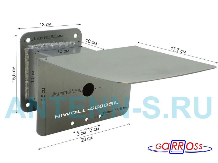 В корзину Купить в 1 клик Кронштейн для камеры и прожектора с боксом "HIWOLL-5500GR-138477" серый с козырьком, к стене