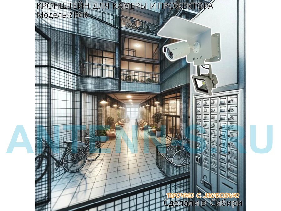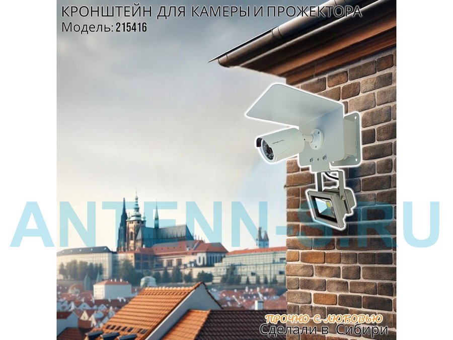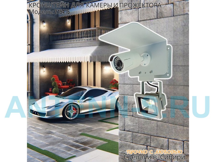 Современное надёжное решение для монтажа видеокамеры и прожектора на стену здания.