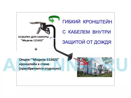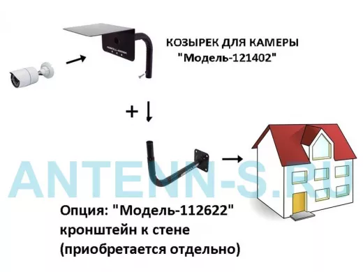 - Кронштейн с козырьком предназначен для крепления видеокамер и защиты их от дождя, снега и солнца.