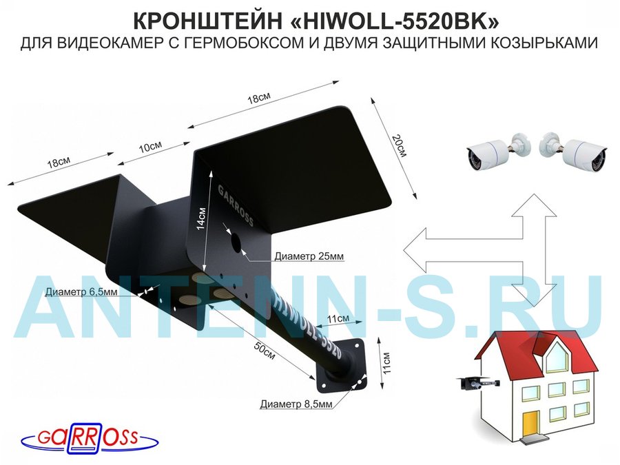 В корзину Купить в 1 клик Кронштейн для двух камер и прожекторов "HIWOLL-5520BK-138987" черный, бокс, козырьки, к стене