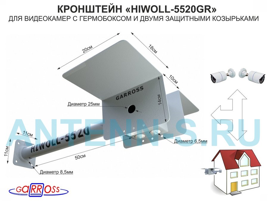 В корзину Купить в 1 клик Кронштейн для двух камер и прожекторов "HIWOLL-5520GR-138988" серый, бокс, козырьки, к стене