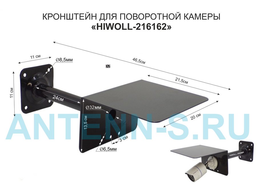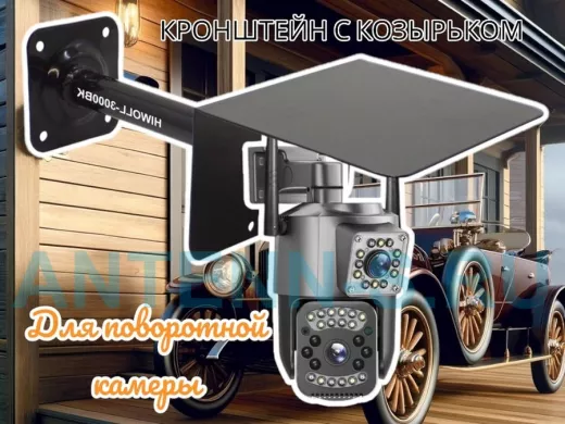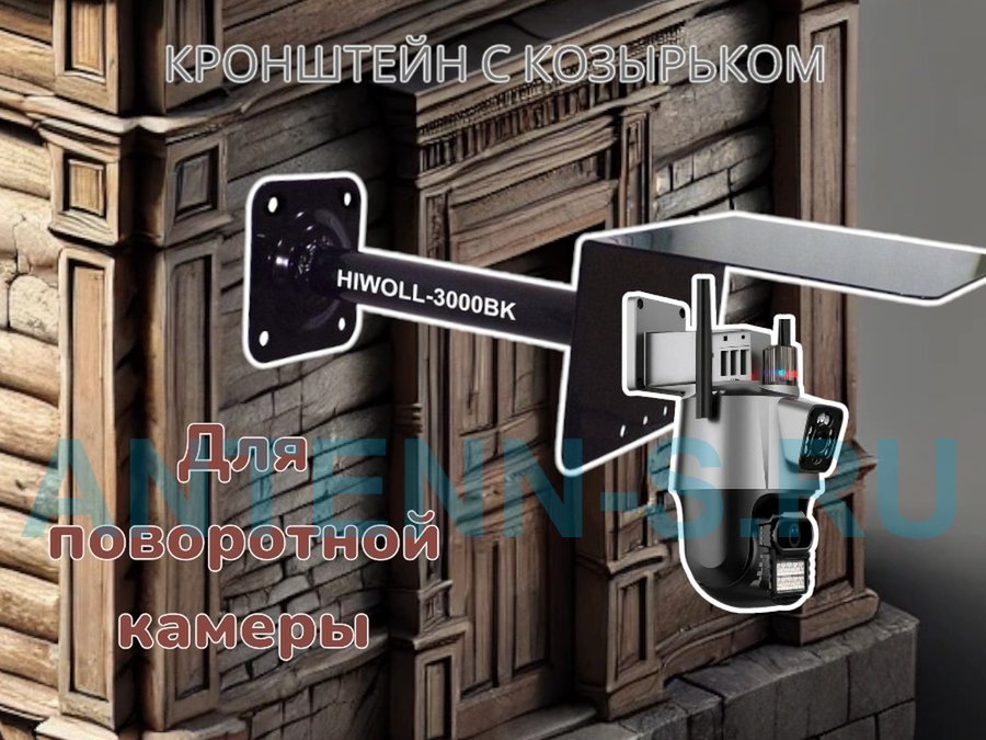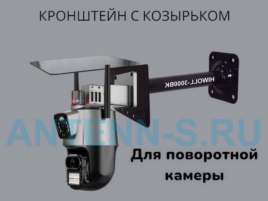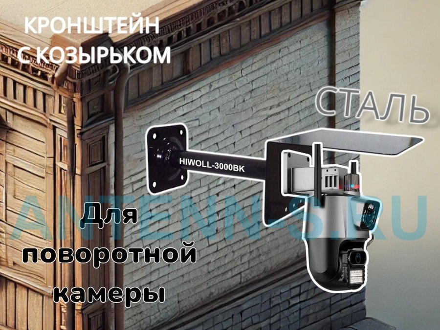 Кронштейн для поворотной камеры с вылетом 25см и козырьком для защиты "HIWOLL-216162" черный, сталь
