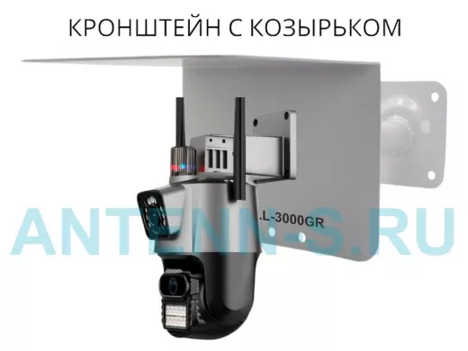 Кронштейн для поворотной камеры с вылетом 25см и козырьком для защиты "HIWOLL-216163" серый, сталь