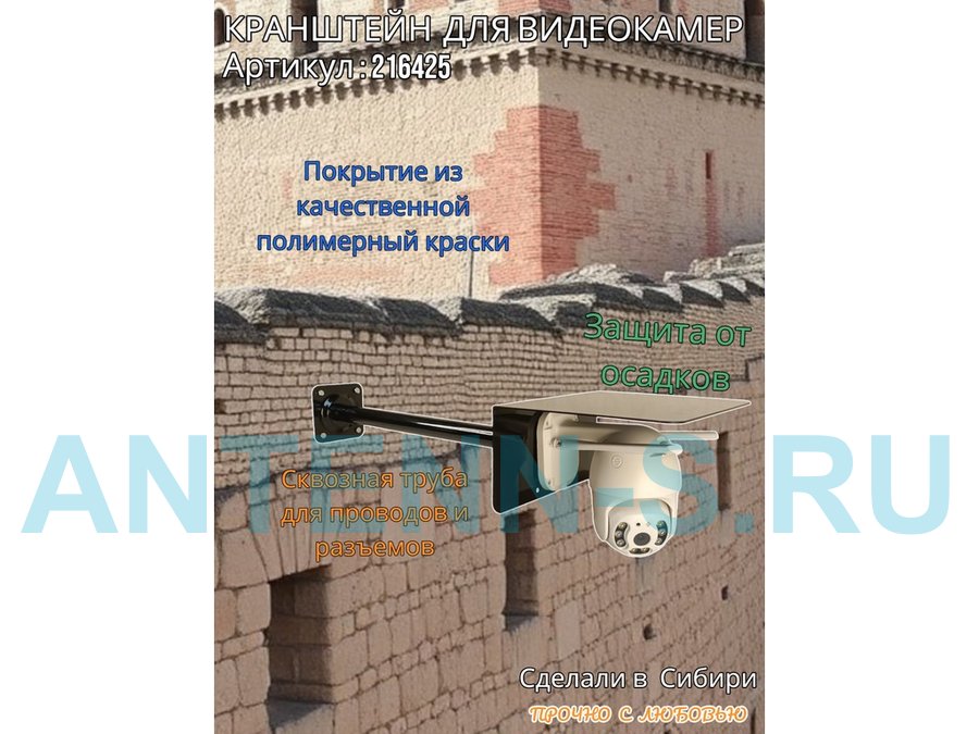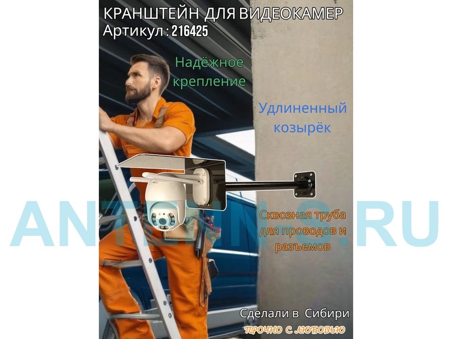 - Стальной кронштейн позволяет вынести камеру от стены на 50 см.