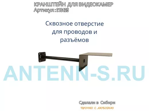 - Кронштейн для крепления видеокамеры к стене имеет сквозное отверстие от основания до козырька, что позволяет спрятать соединения кабеля, тем самым защищает их от внешних воздействий (дождь, снег, ветер) поэтому нет необходимости использовать дополнительный гермобокс, т.к. разъемы спрячутся в трубе.