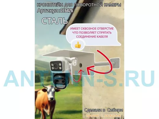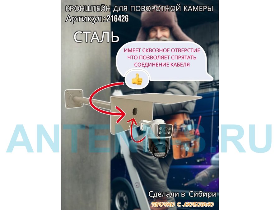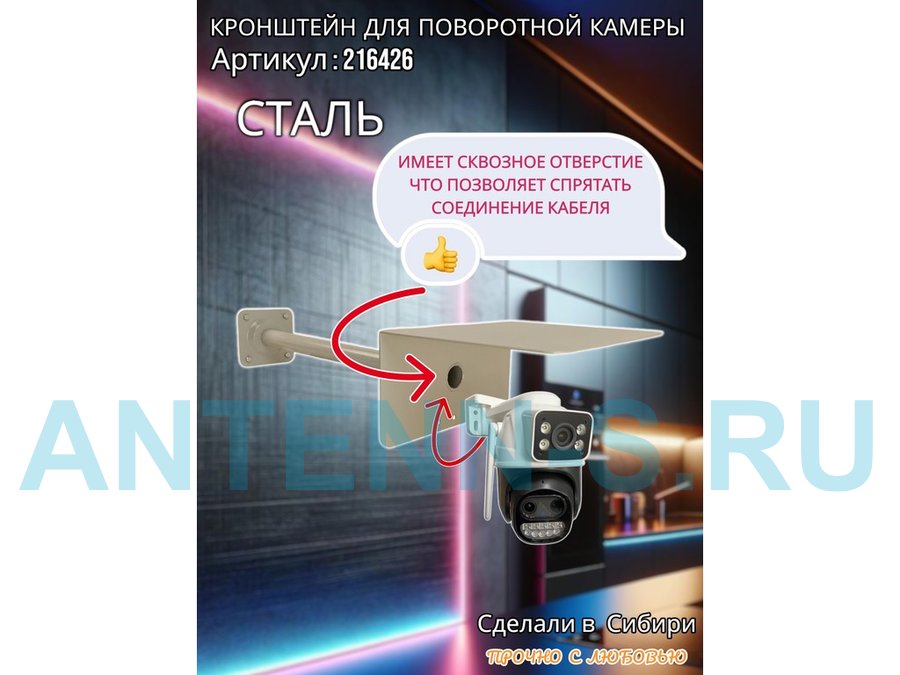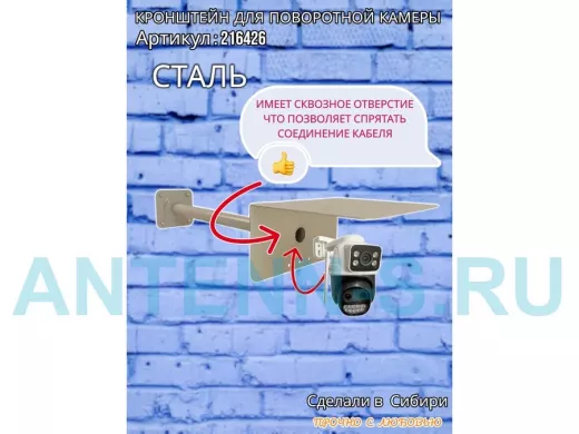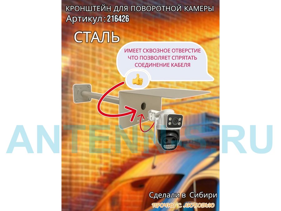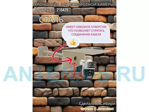 - Стальной кронштейн позволяет вынести камеру от стены на 50 см.