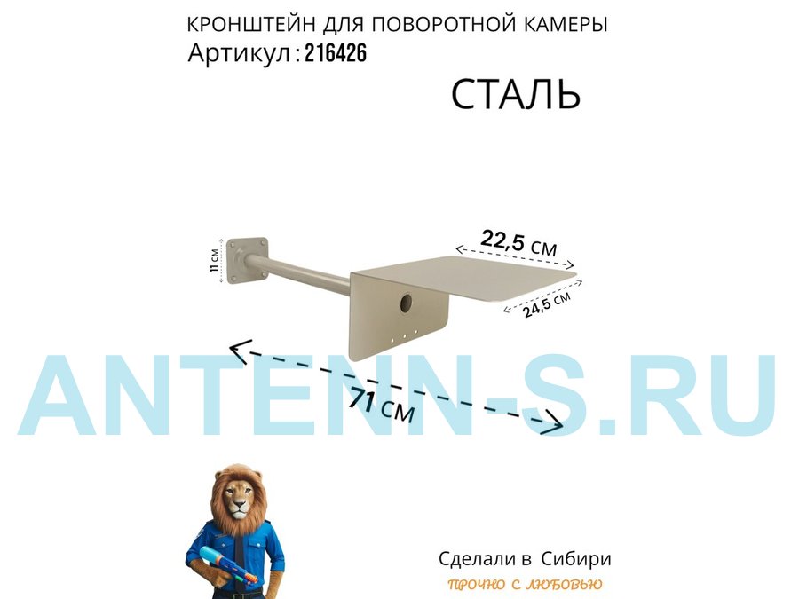 - Кронштейн изготовлен с использованием надёжной стальной трубы.