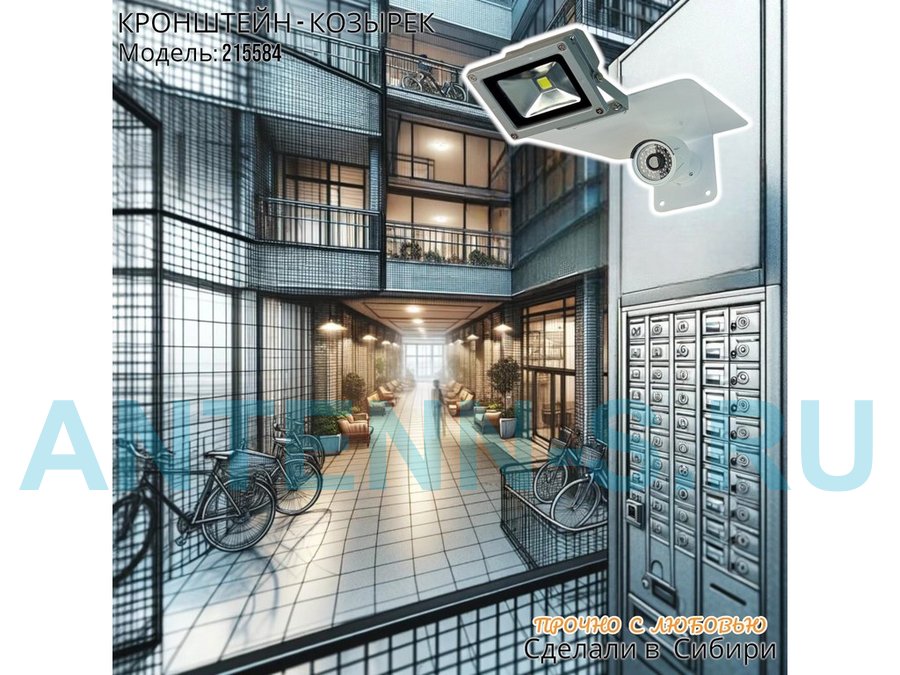 В корзину Купить в 1 клик Кронштейн-козырёк для камеры "POHER-215116" с креплением прожектора, от дождя, сталь 2 мм, серый