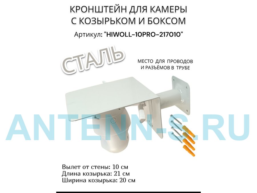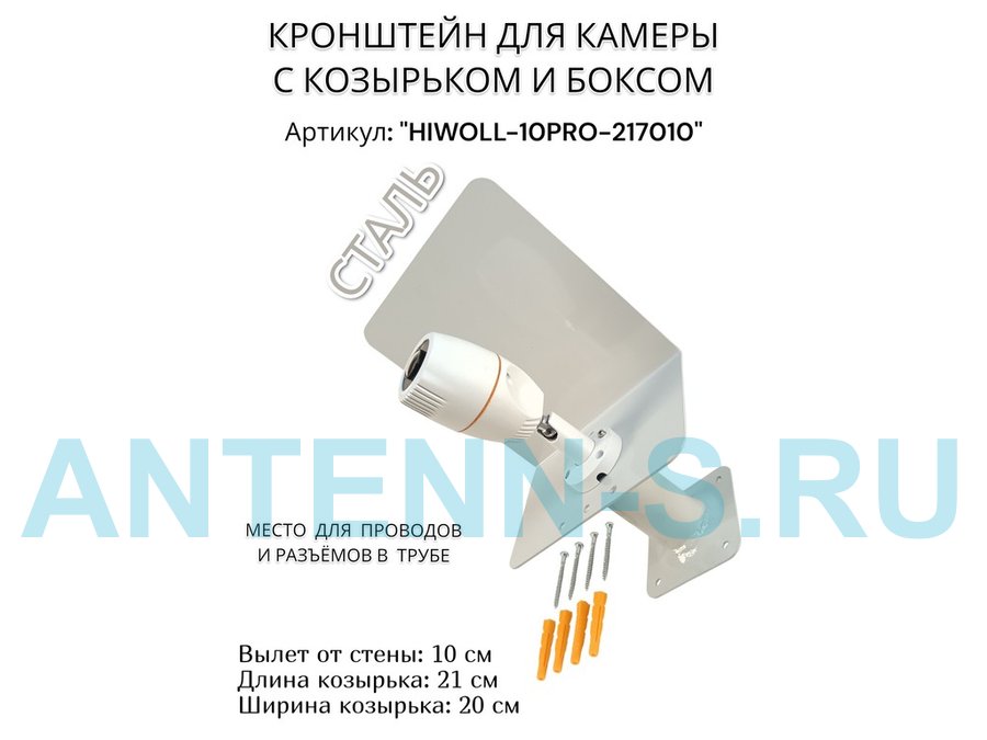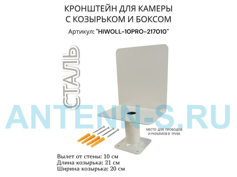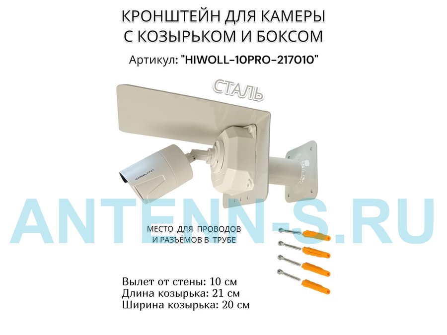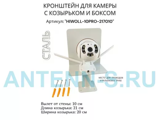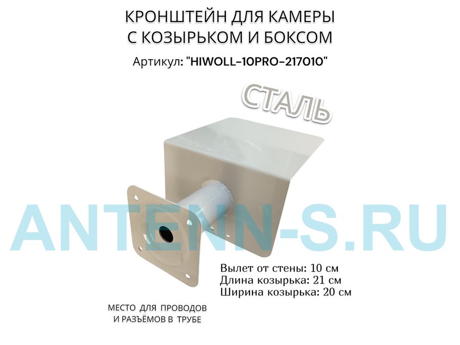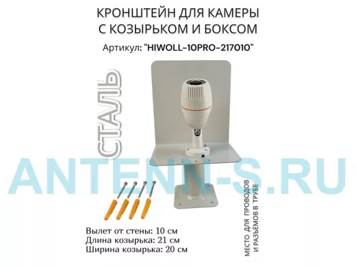 Кронштейн с боксом и козырьком для видеокамеры "HIWOLL-10PRO-217010" серый, вылет 10см, сталь