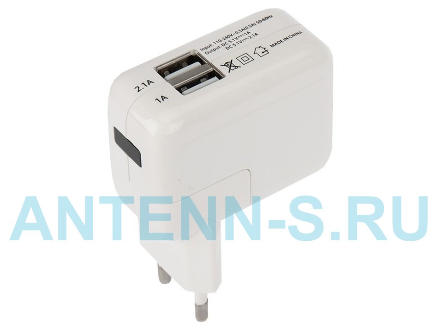 В корзину Купить в 1 клик Зарядное устройство с 2-мя USB REXANT 5 Вольт 1A+2,1A USB переходник + адаптер (СЗУ) (блок питания)