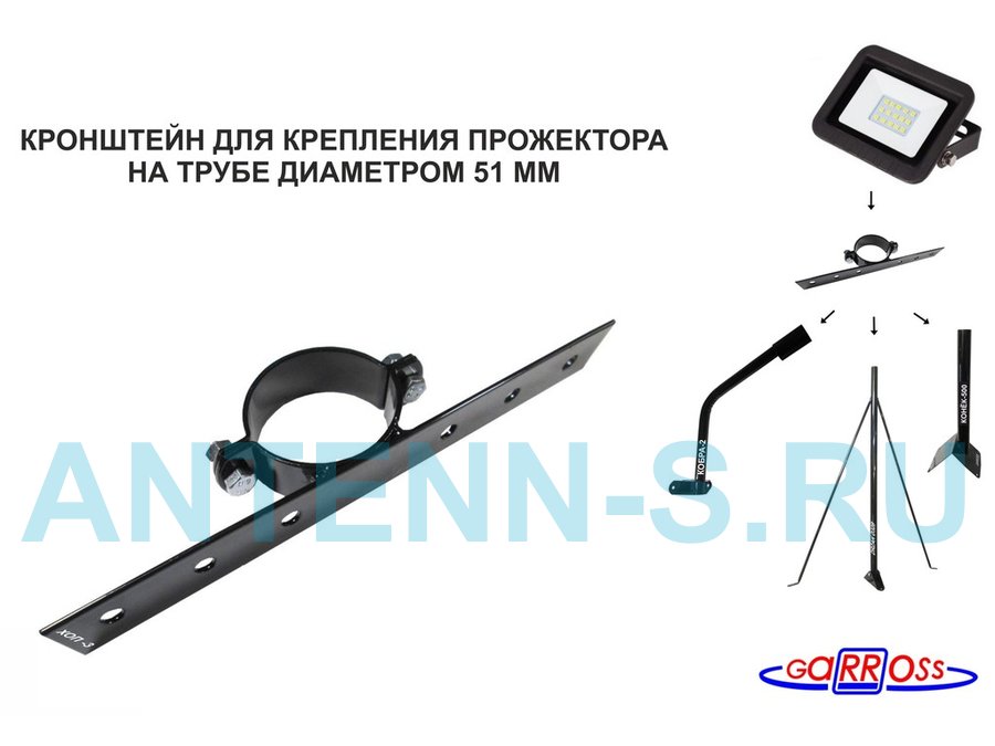 . Для прожекторов. Кронштейны на трубу круглую 50мм. Удлиненные.