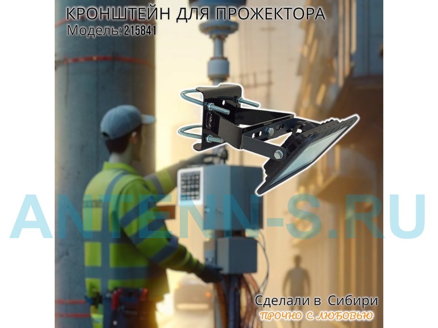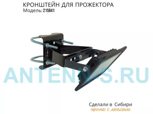 Кронштейн усиленный для крепления прожектора на трубе до 51мм "ПРОЖЕКРЕП-215841" сталь, цвет черный