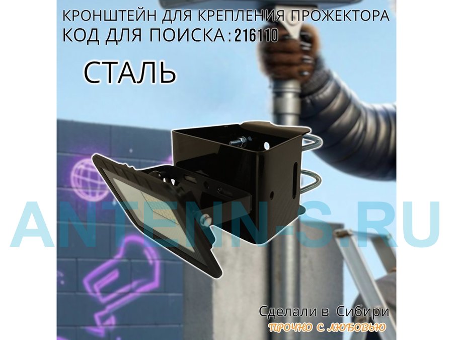 В корзину Купить в 1 клик Кронштейн широкий для крепления прожектора на трубе до 51мм "ПРОЖЕКРЕП-216110" сталь, цвет черный