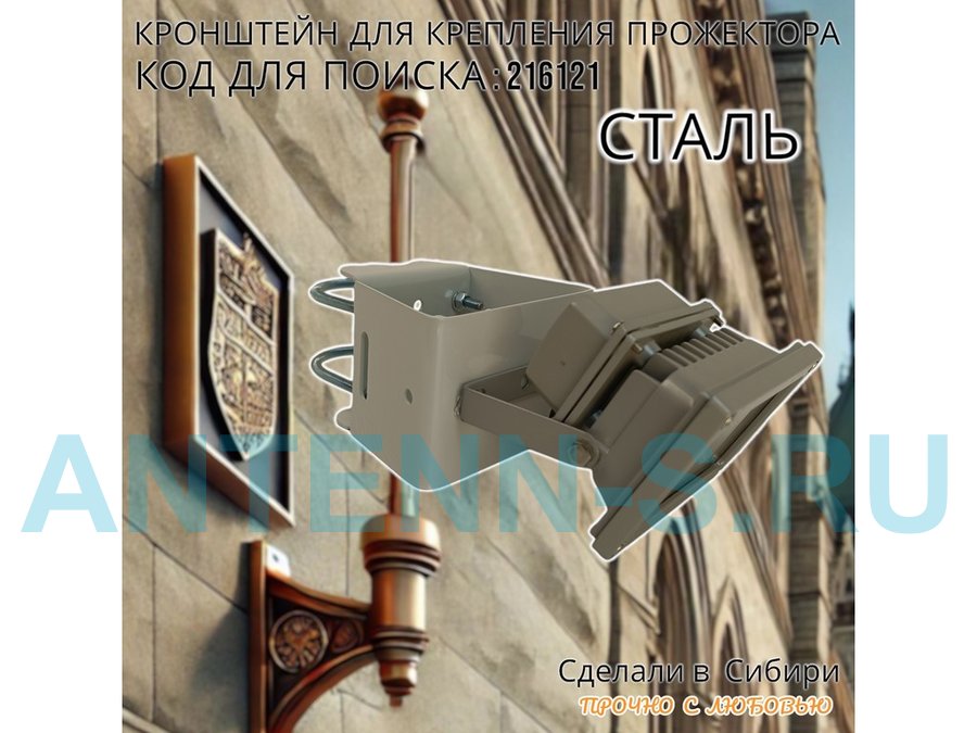 В корзину Купить в 1 клик Кронштейн широкий для крепления прожектора на трубе до 51мм "ПРОЖЕКРЕП-216121" сталь, цвет серый