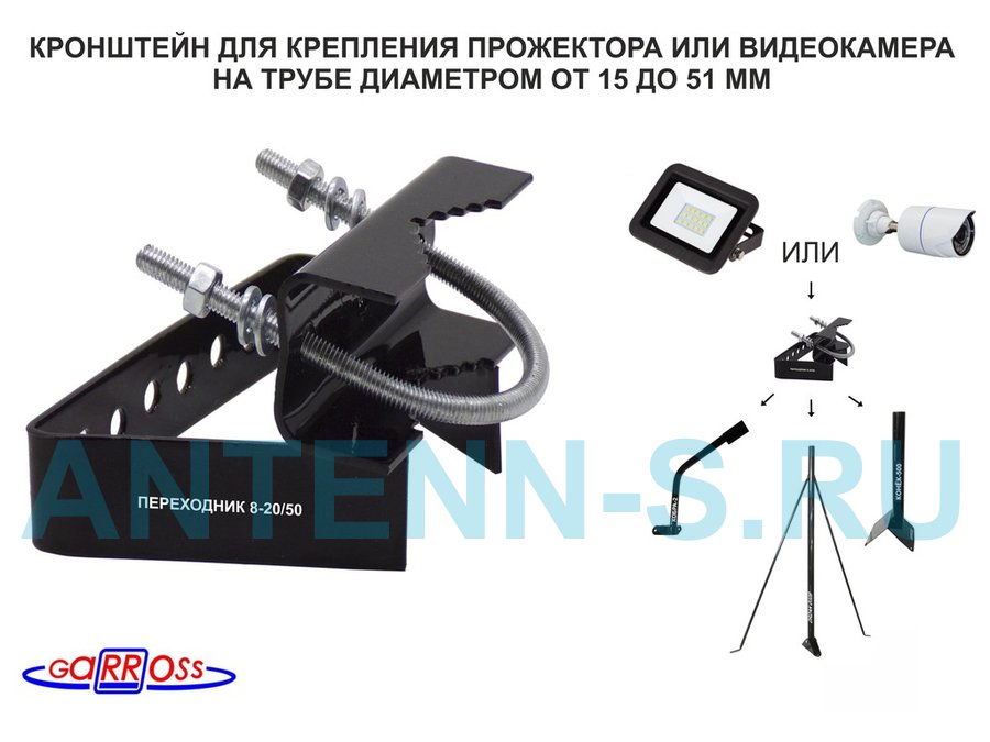 В корзину Купить в 1 клик Кронштейн "ПЕРЕХОДНИК 4-20/50" для крепления атенн,прожекторов, видеокамер на мачте от 20 до 50мм