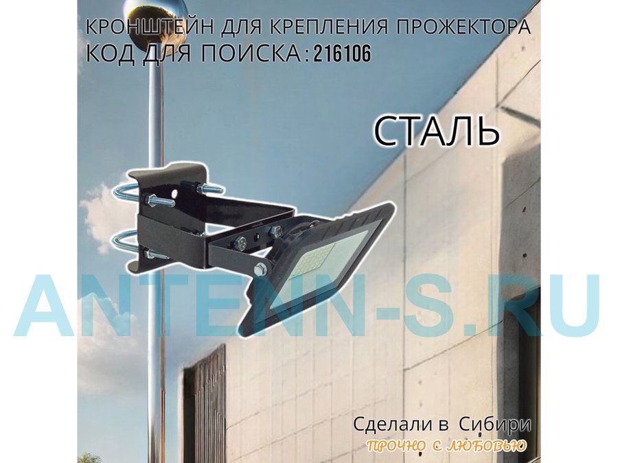В корзину Купить в 1 клик Кронштейн усиленный для крепления прожектора на трубе до 51мм "ПРОЖЕКРЕП-216106" сталь, цвет черный