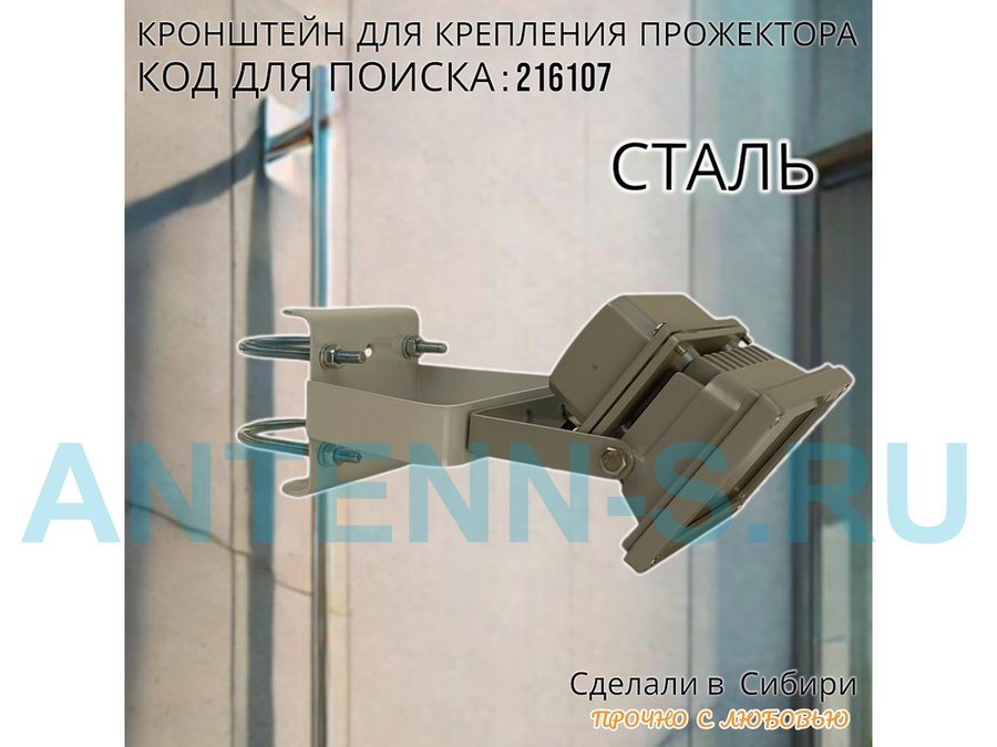 В корзину Купить в 1 клик Кронштейн усиленный для крепления прожектора на трубе до 51мм "ПРОЖЕКРЕП-216107" сталь, цвет серый
