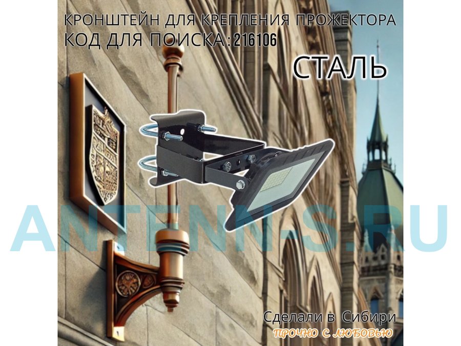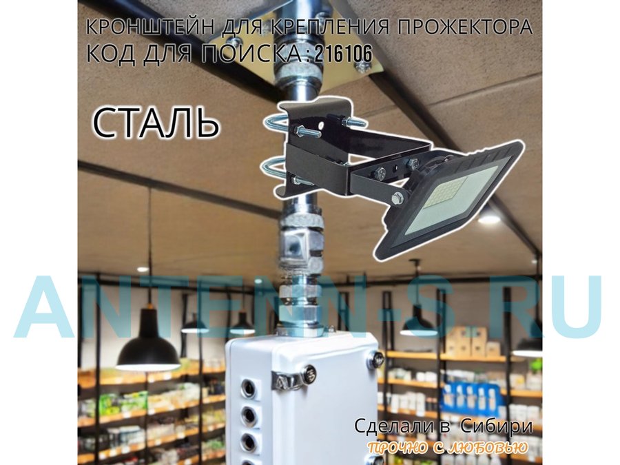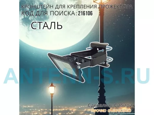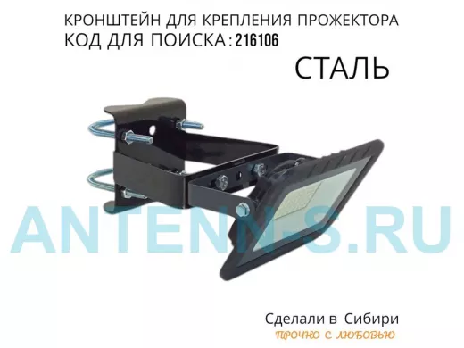 Кронштейн усиленный для крепления прожектора на трубе до 51мм "ПРОЖЕКРЕП-216106" сталь, цвет черный