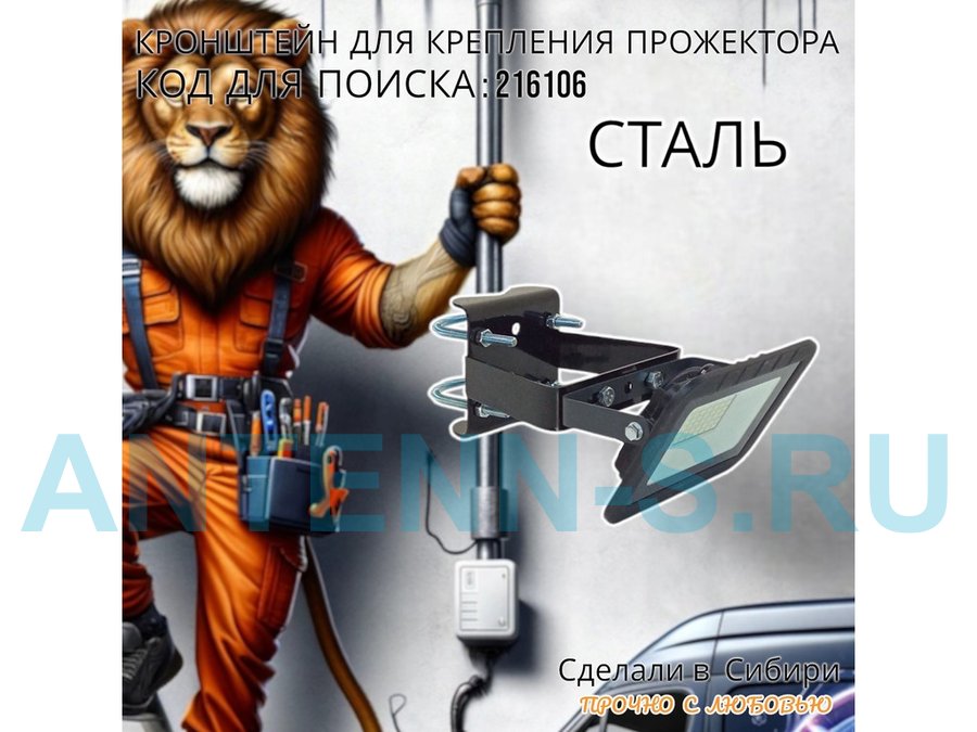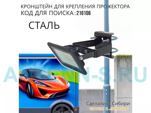 - Кронштейн усиленный предназначен для крепления светодиодных прожекторов на трубе диаметром от 15 до 51мм.
