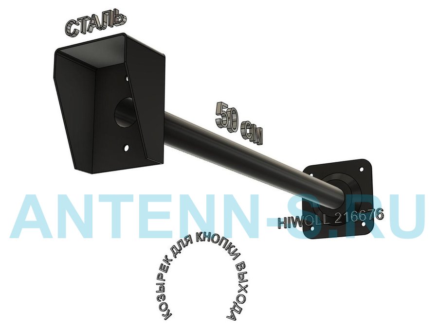 Стальной защитный козырек для кнопок выхода с вылетом от стены 50см "HIWOLL 216676" черный, 8х11см