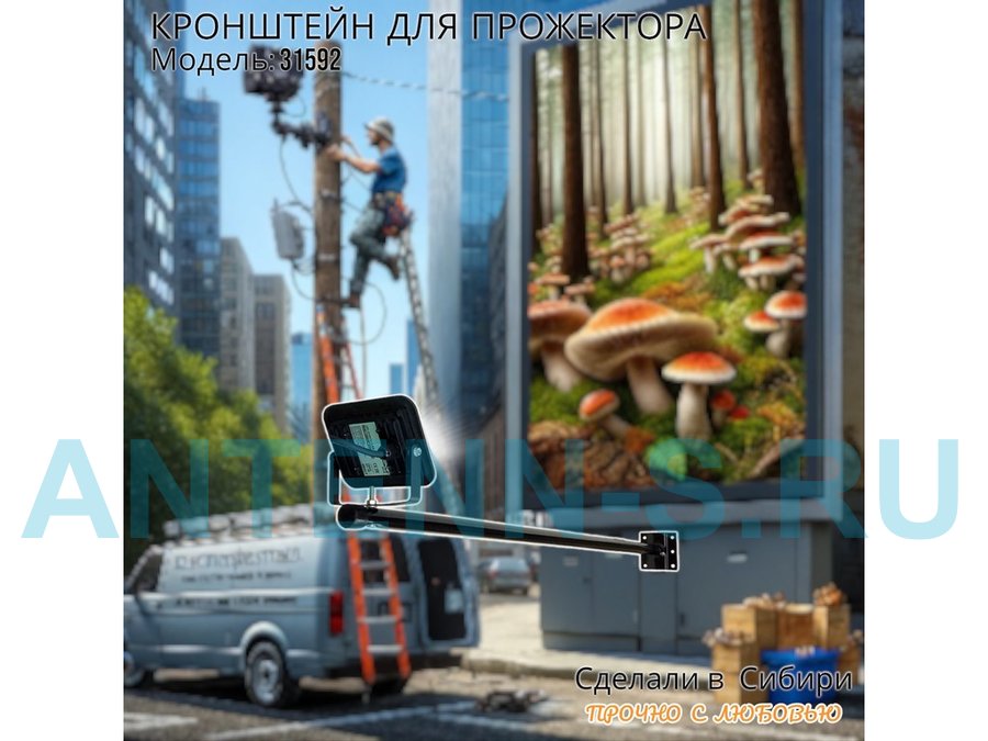 В корзину Купить в 1 клик Кронштейн для прожектора "ПОДСВЕТКА-31595" сталь, серый с креплением к стене, вылет 0,6 метра