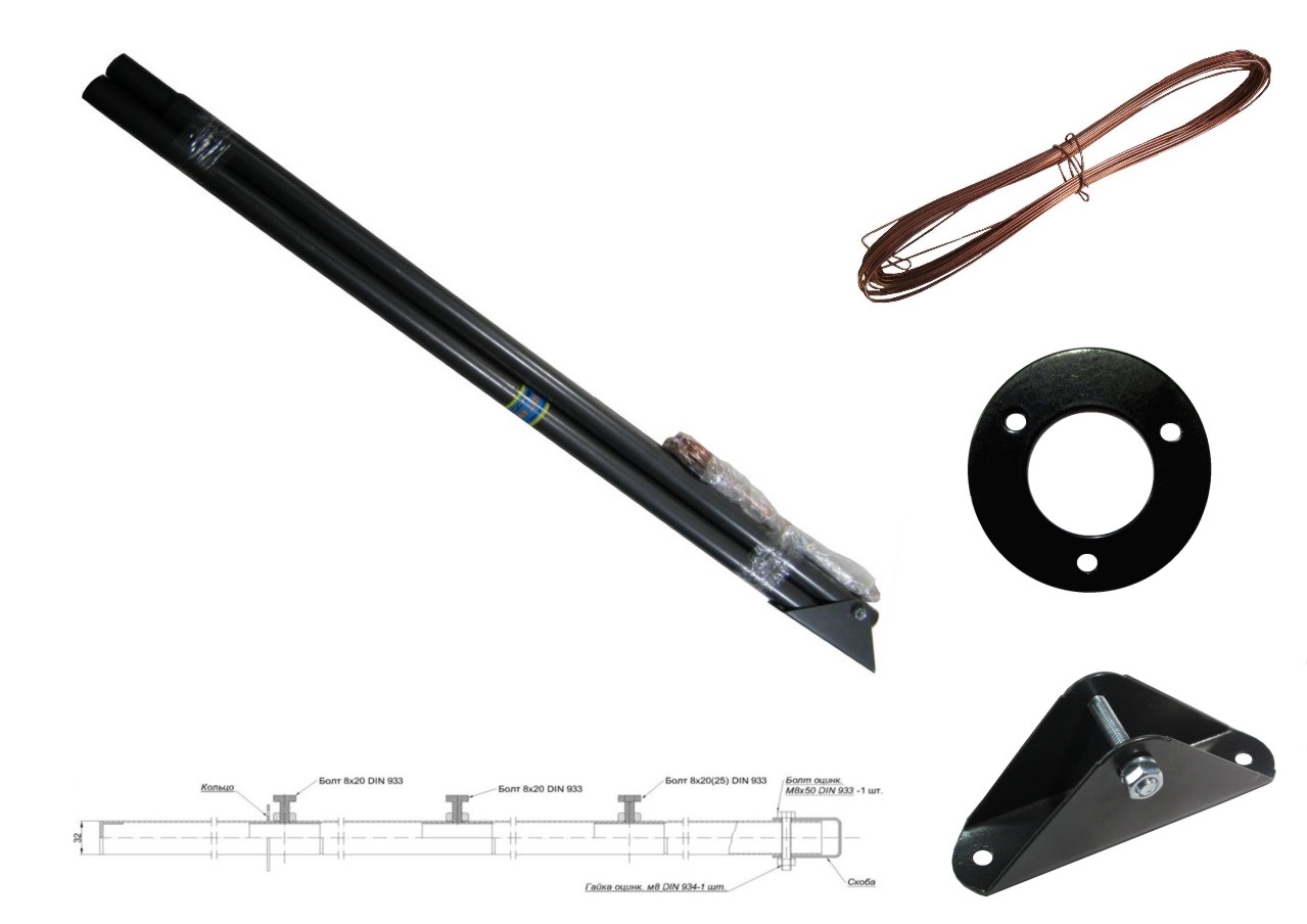 Мачта "SOFT ANGLE-2" ЧЁРНАЯ 2 метра антенная с растяжками и подпятником,2 секции, диаметр трубы 32мм