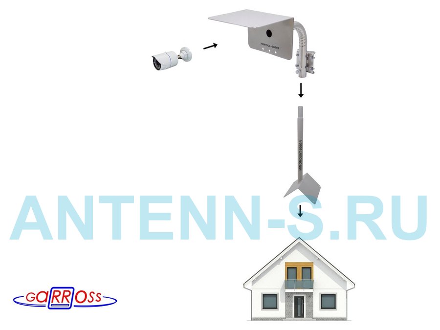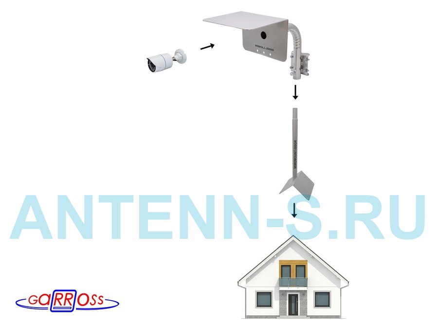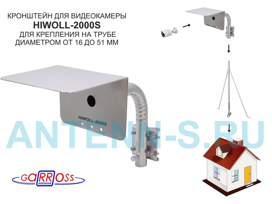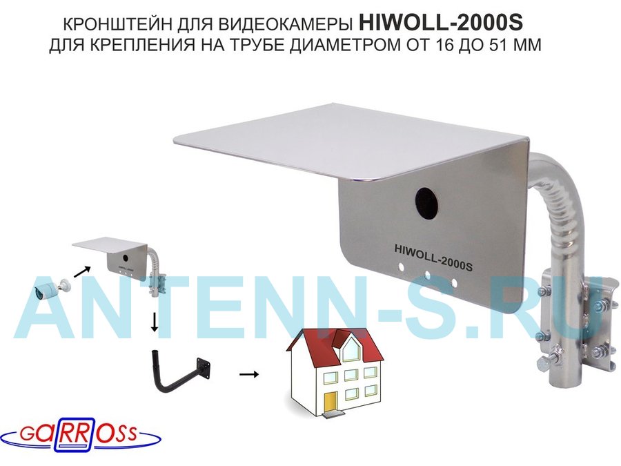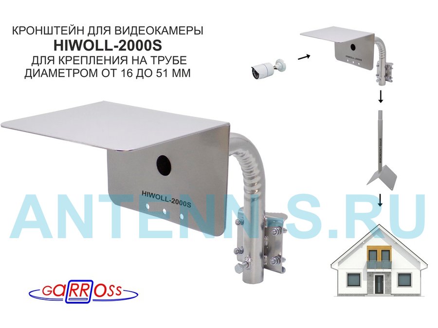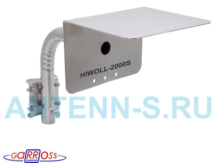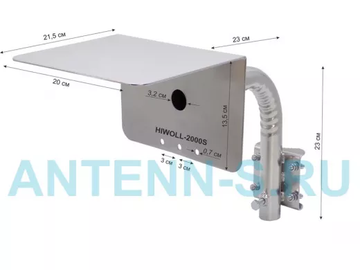 Кронштейн "HIWOLL-2000S-201358" серебристый с хомутами и козырьком на мачту для камеры и прожектора