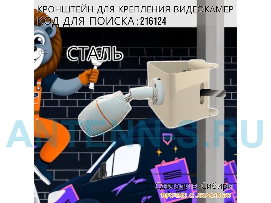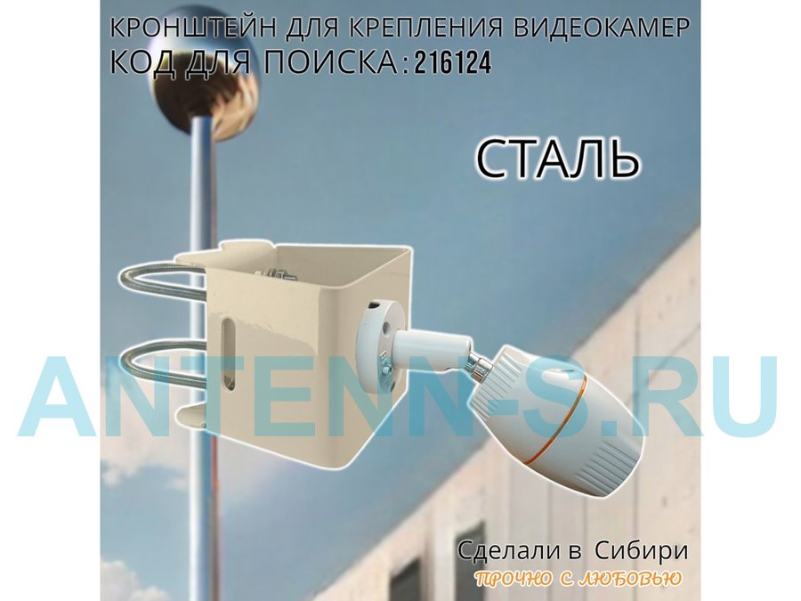 - Универсальный усиленный кронштейн предназначен для крепления видеокамеры на трубе диаметром от 15 до 51мм или на столбе.