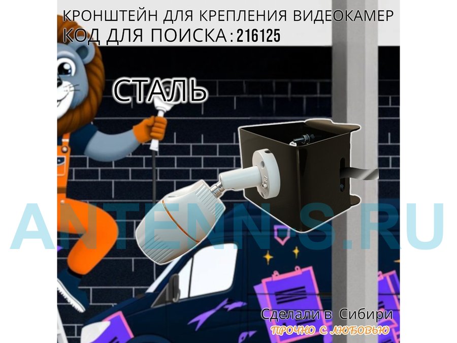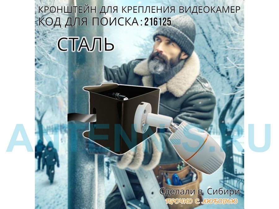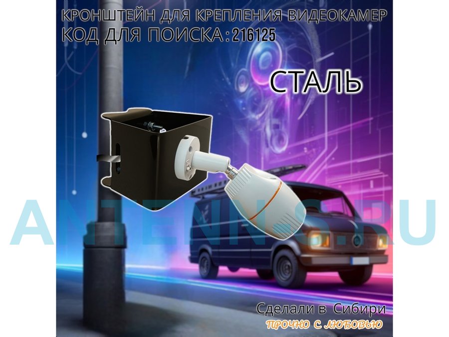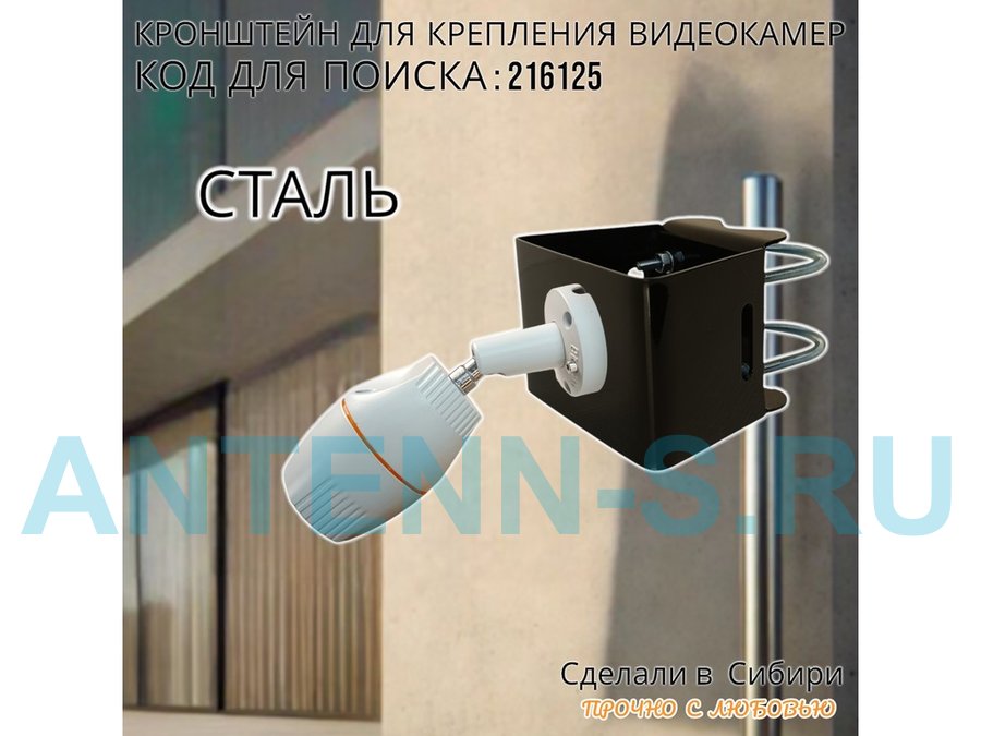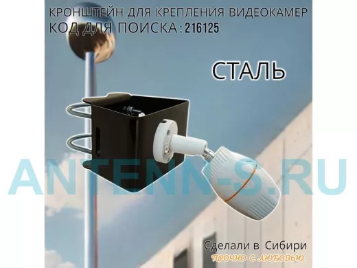 - Универсальный усиленный кронштейн предназначен для крепления видеокамеры на трубе диаметром от 15 до 51мм или на столбе.