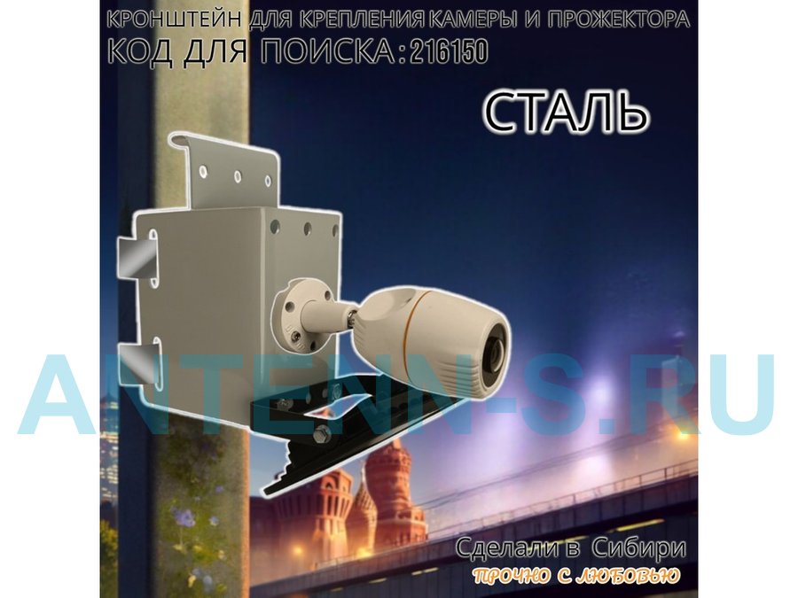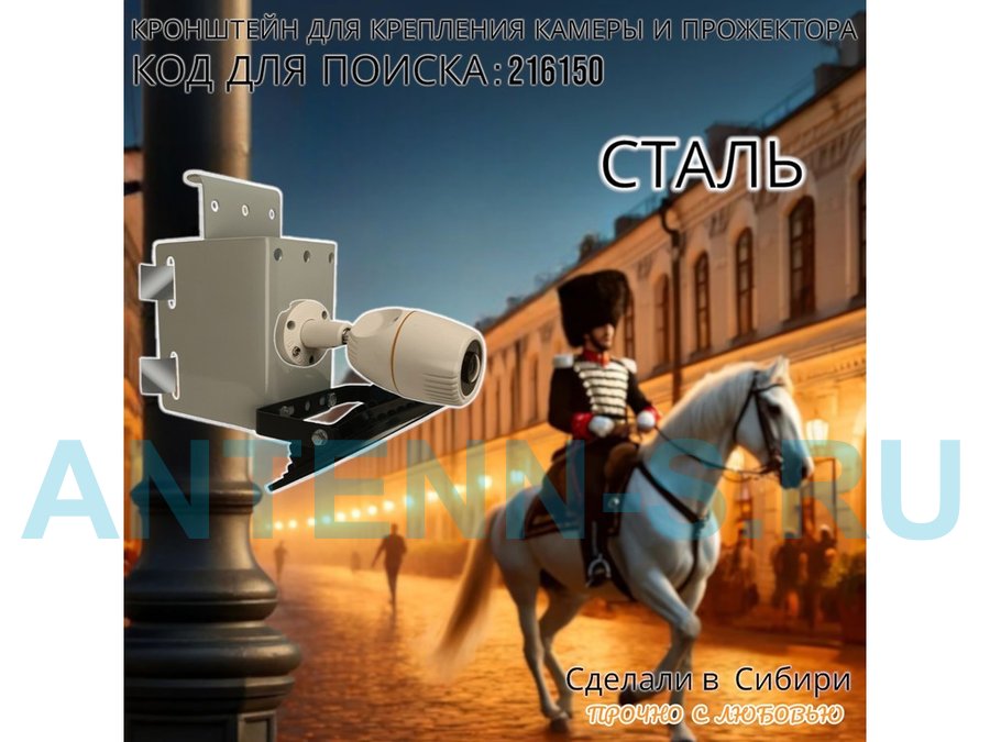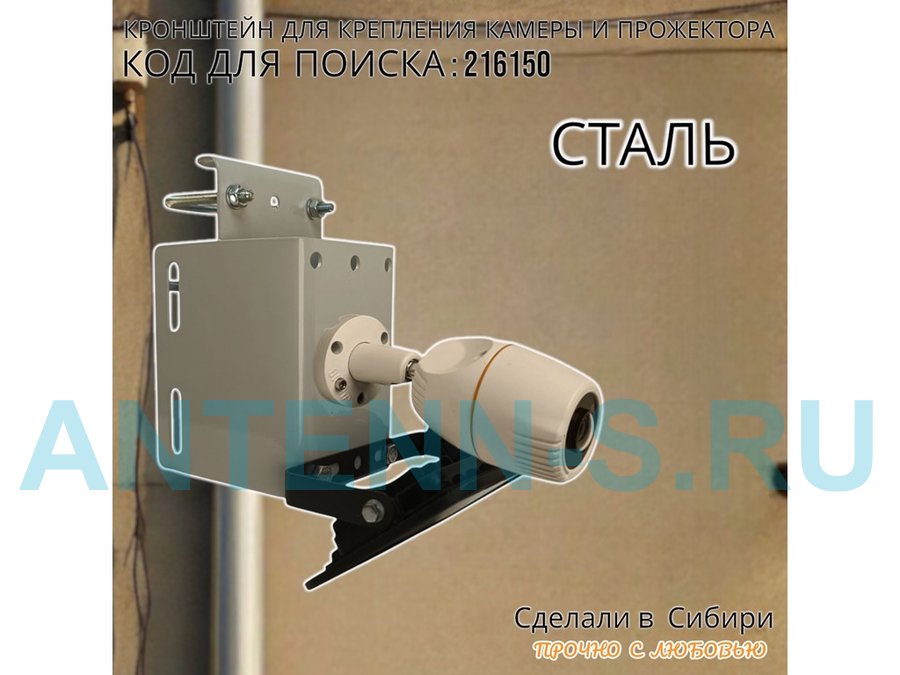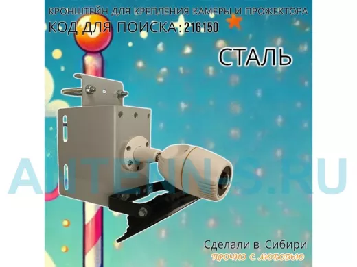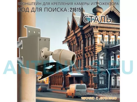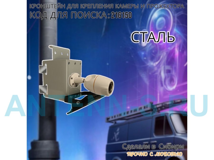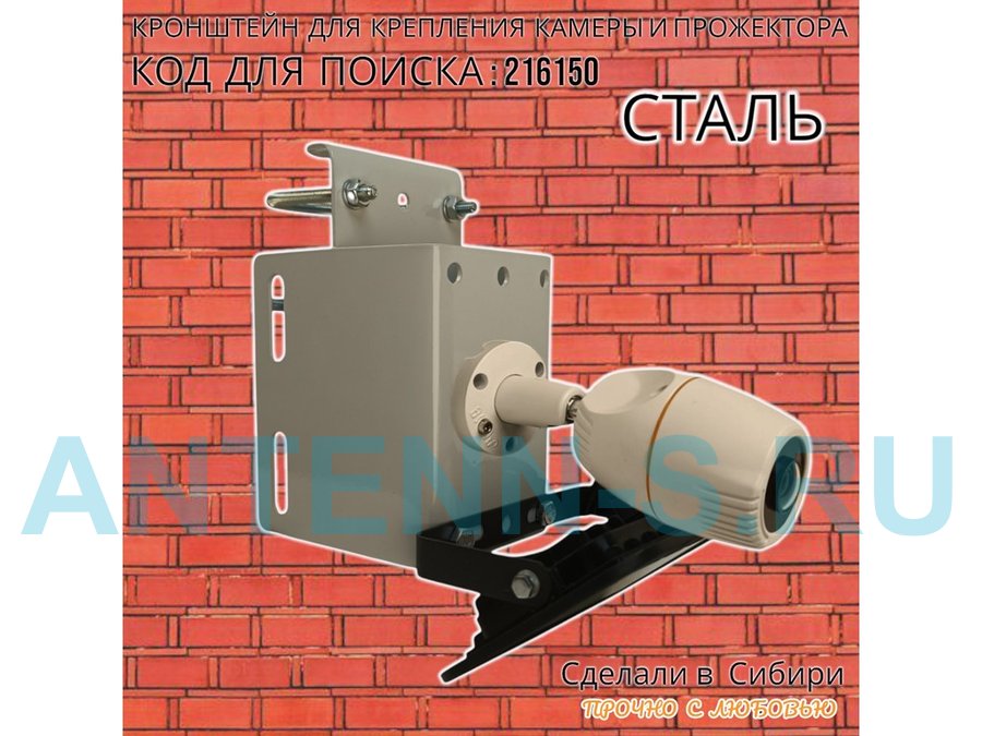- Универсальный усиленный кронштейн предназначен для крепления прожектора или камеры на трубе диаметром от 15 до 51мм или на столбе.