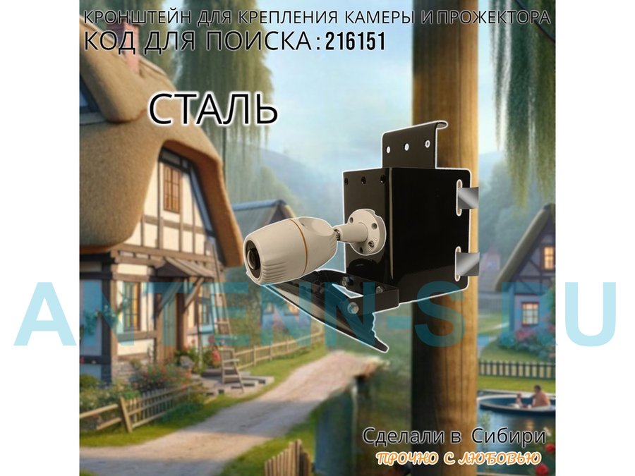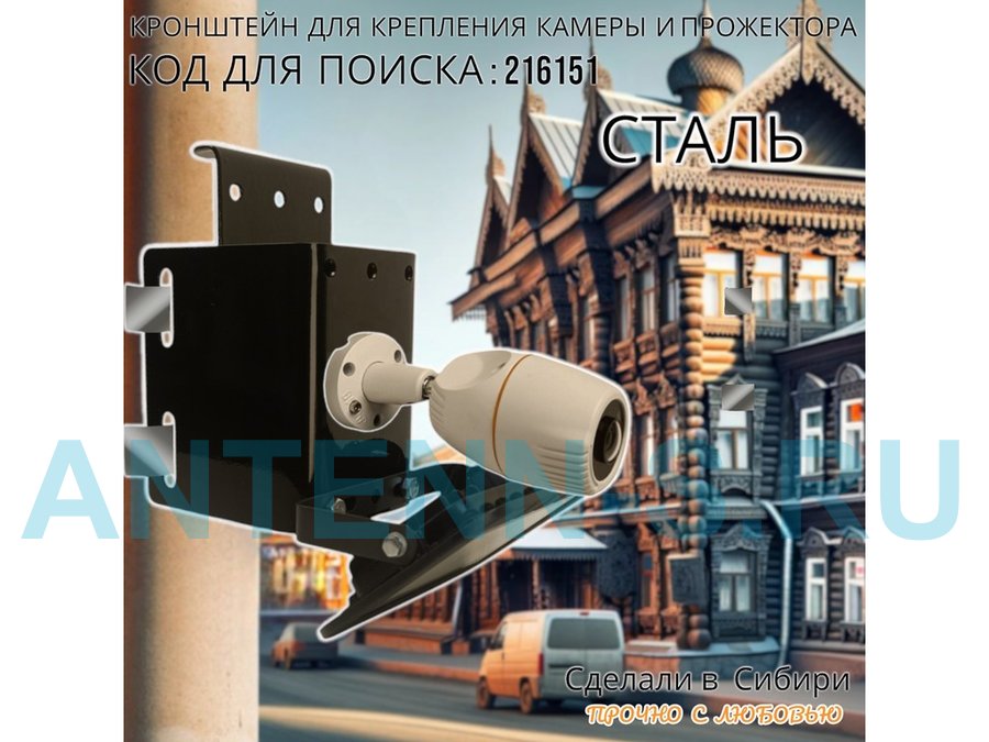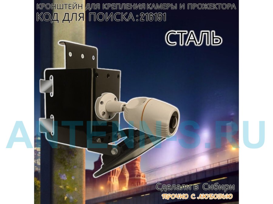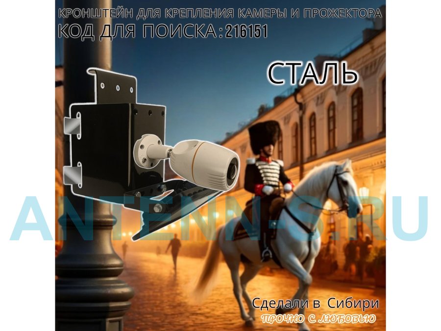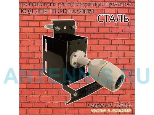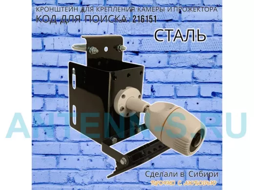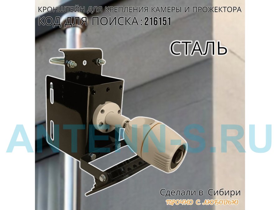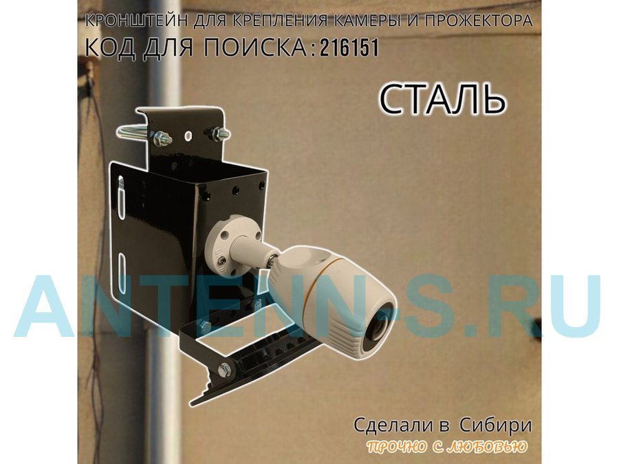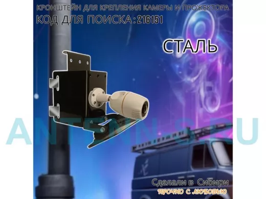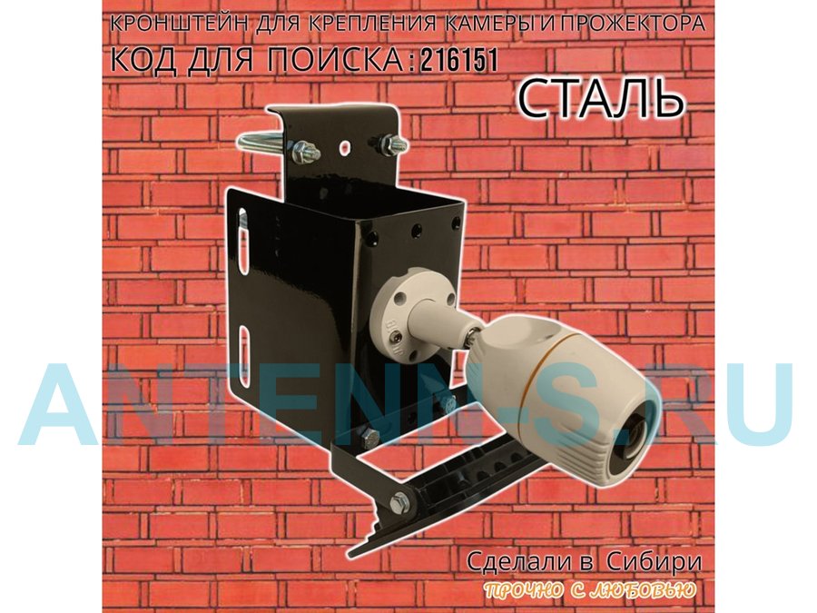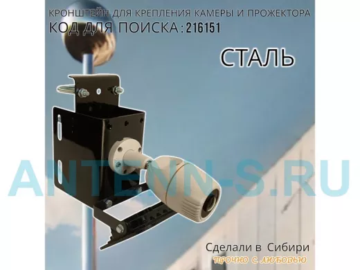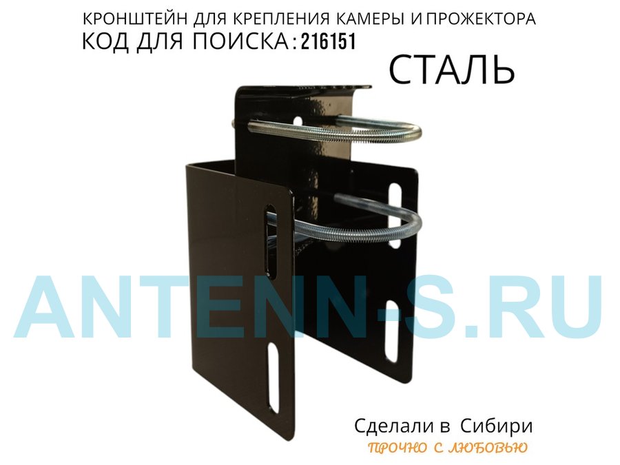 - Универсальный усиленный кронштейн предназначен для крепления прожектора или камеры на трубе диаметром от 15 до 51мм или на столбе.