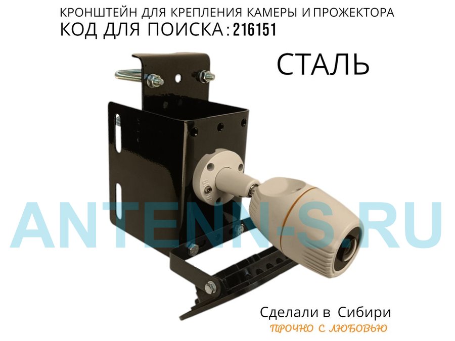 Кронштейн универсальный на трубу или столб для камеры или прожектора "ПРОЖЕКРЕП-216151" сталь,черный