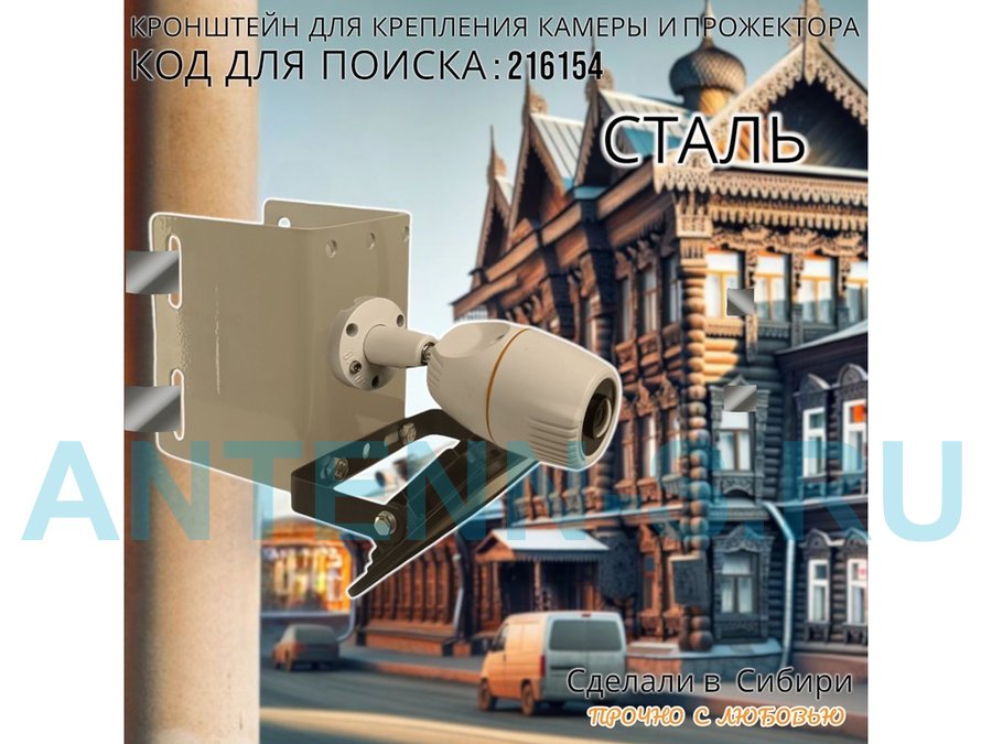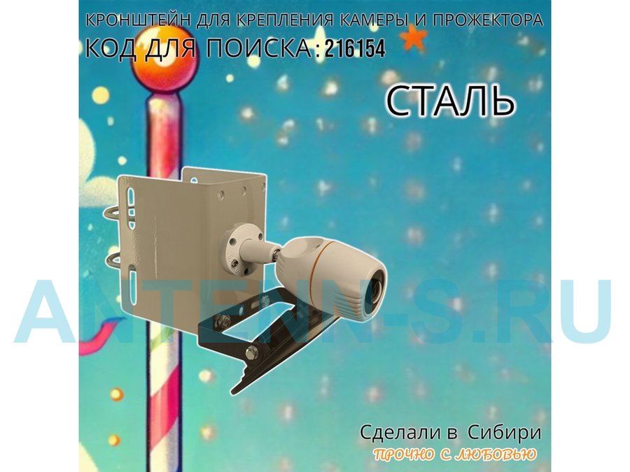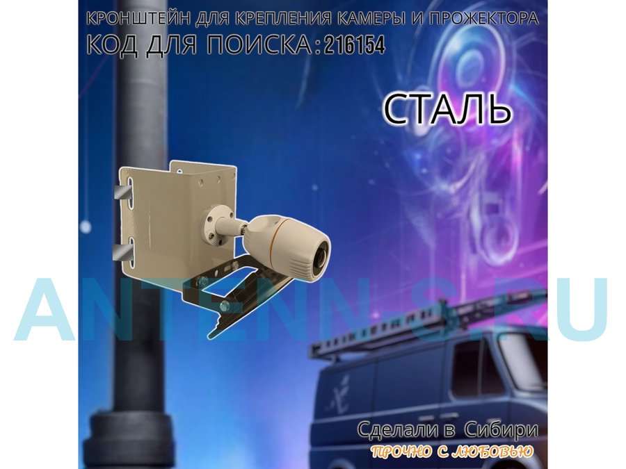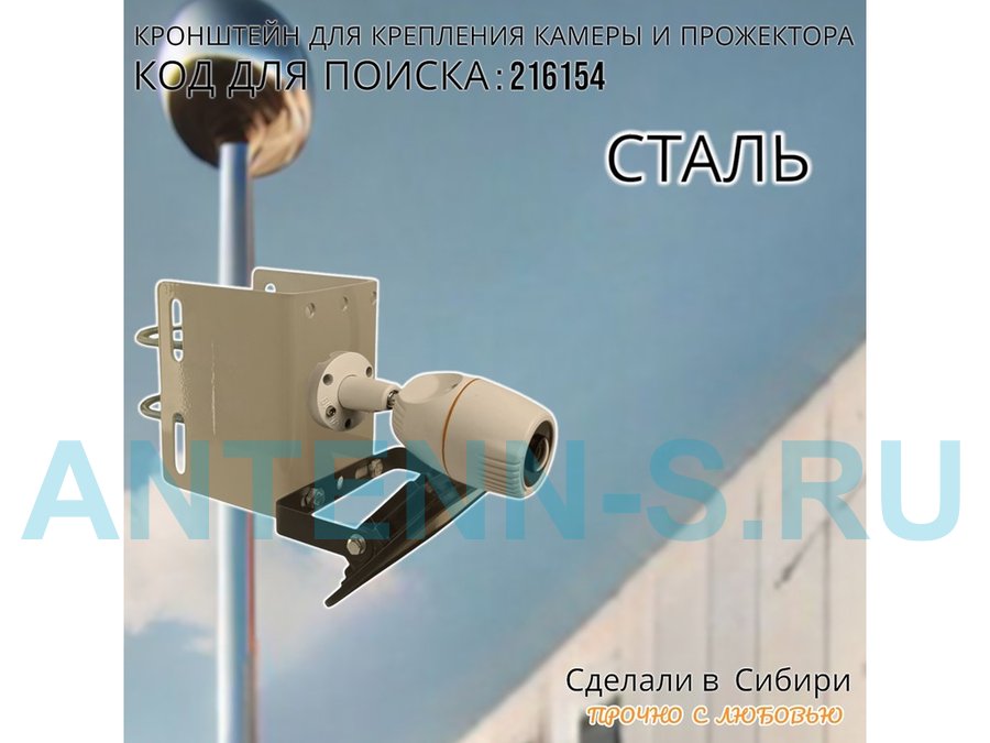 - Универсальный усиленный кронштейн предназначен для крепления прожектора или камеры на трубе диаметром от 15 до 51мм или на столбе.