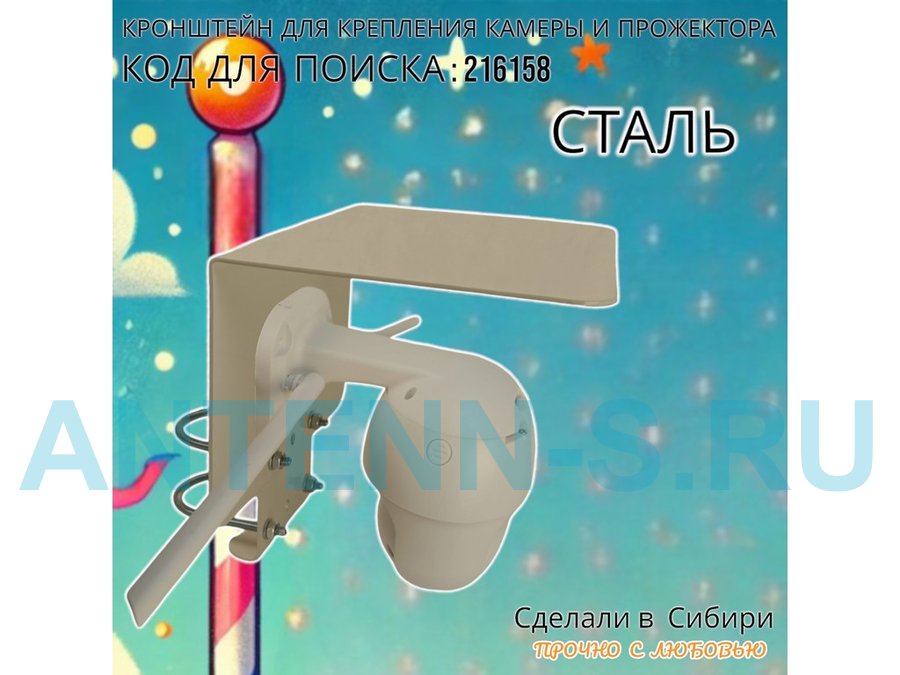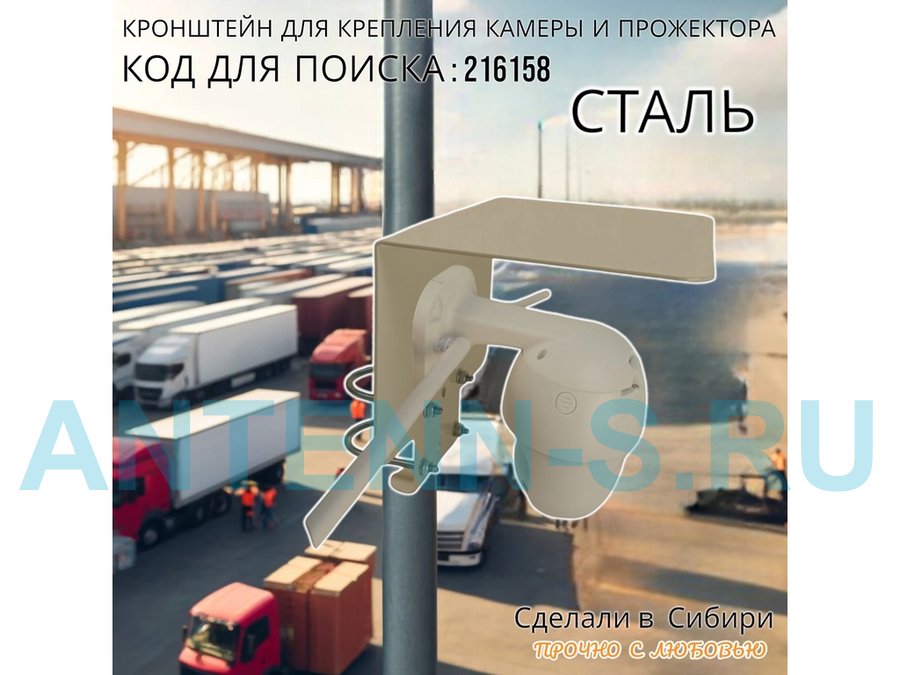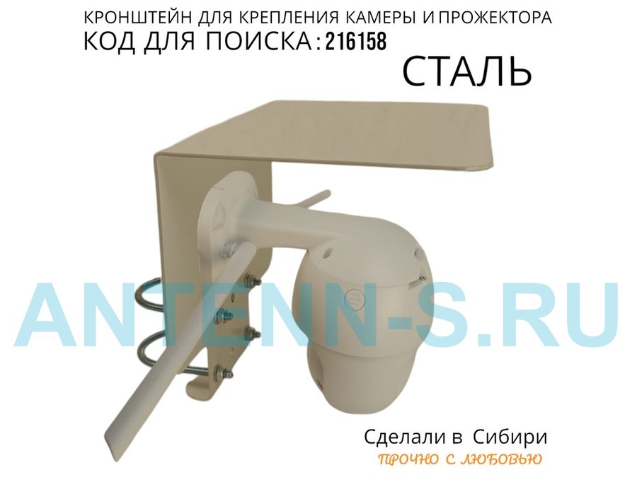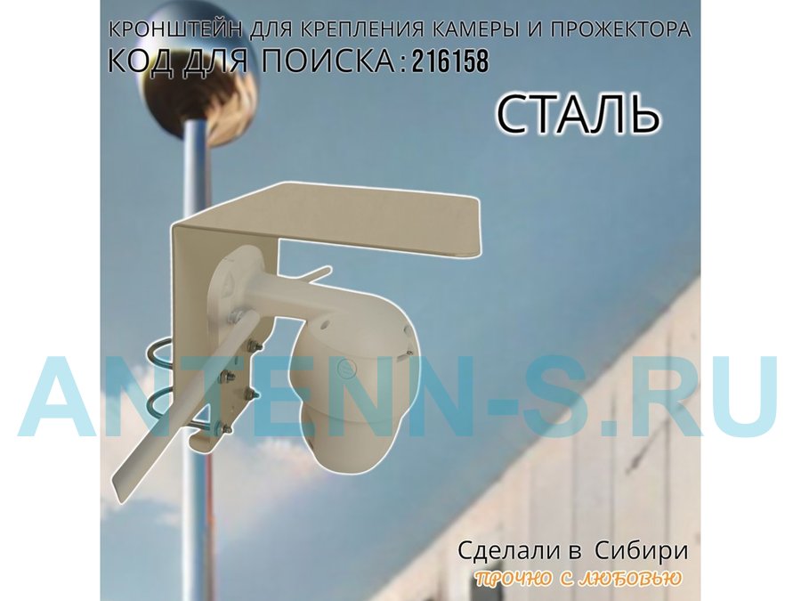 - Универсальный кронштейн с козырьком предназначен для крепления камеры наблюдения на трубе диаметром от 15 до 51мм.
