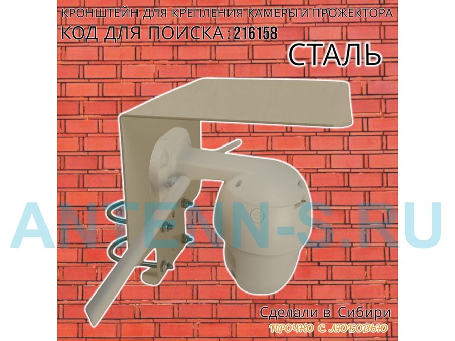 Кронштейн с козырьком на трубу для камеры и прожектора "ПРОЖЕКРЕП-216158" сталь, два хомута, серый