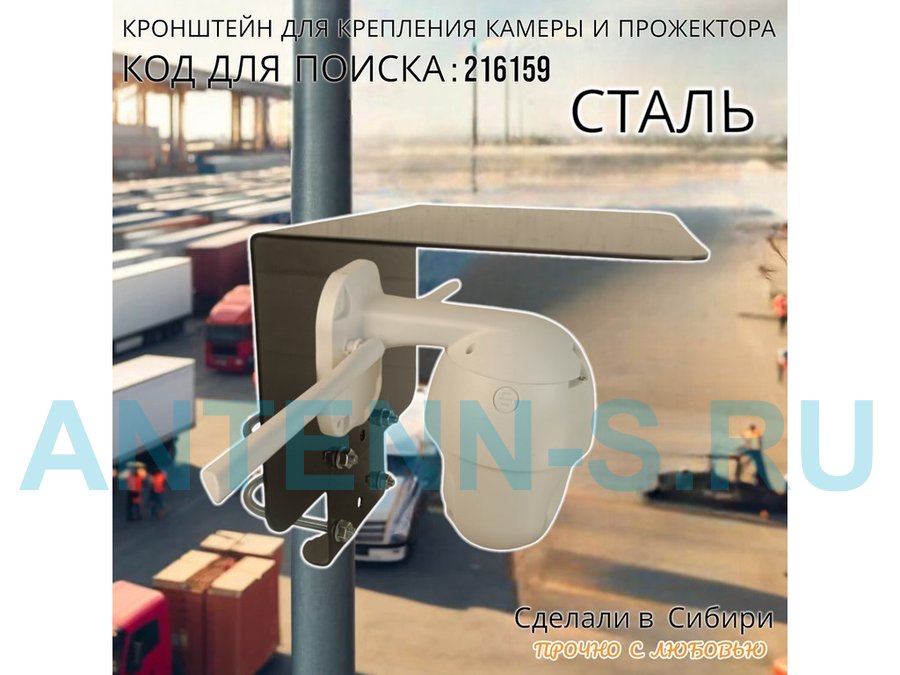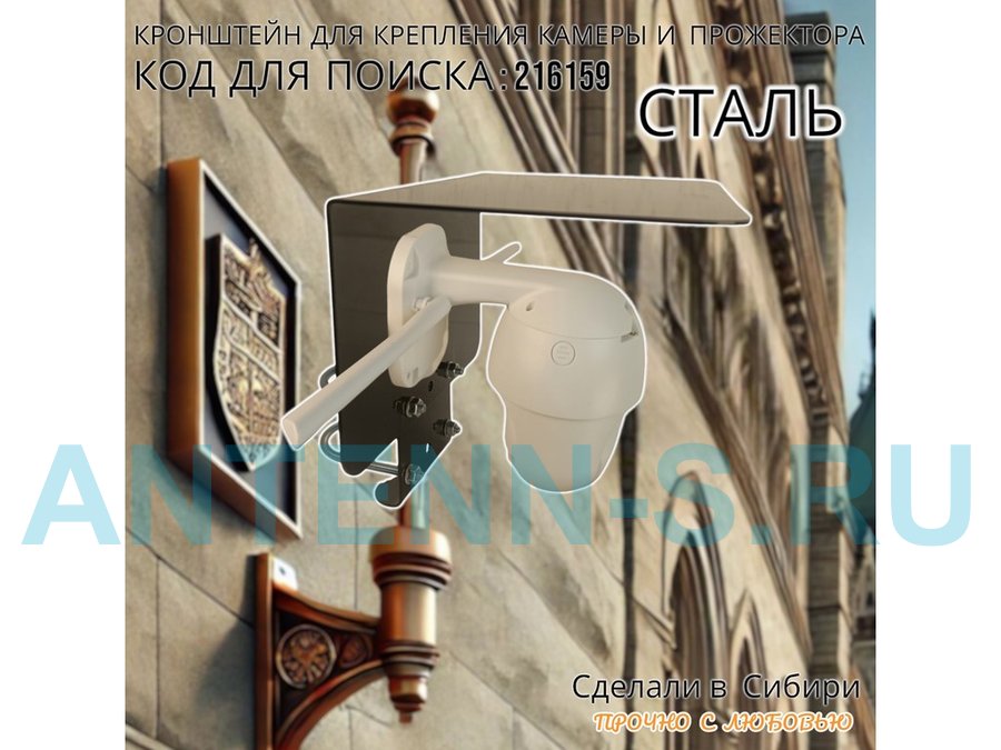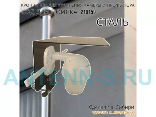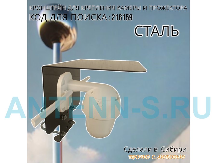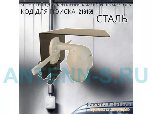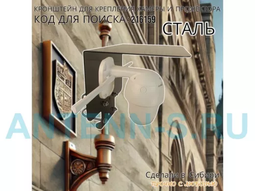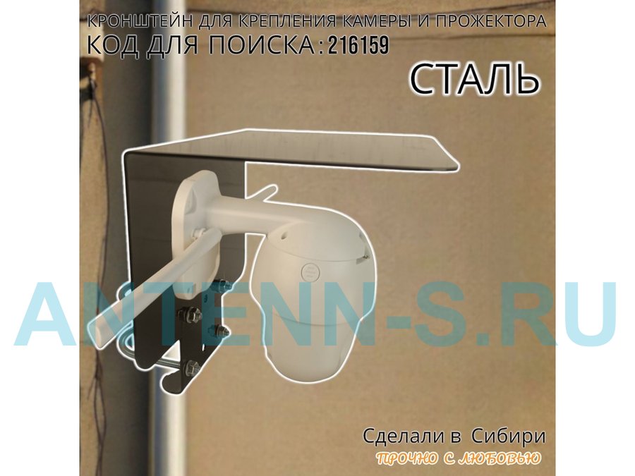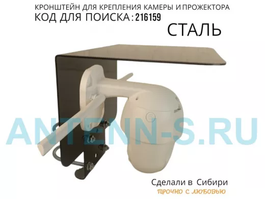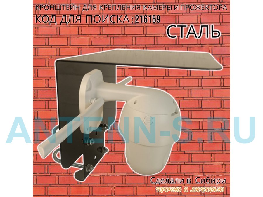 Кронштейн с козырьком на трубу для камеры и прожектора "ПРОЖЕКРЕП-216159" сталь, два хомута, черный