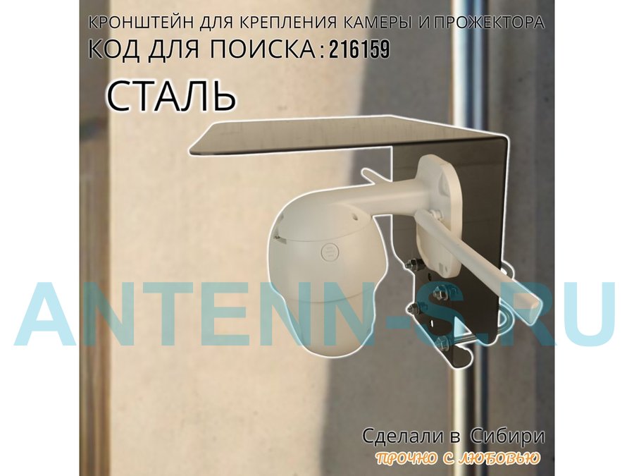 - Универсальный кронштейн с козырьком предназначен для крепления камеры наблюдения на трубе диаметром от 15 до 51мм.